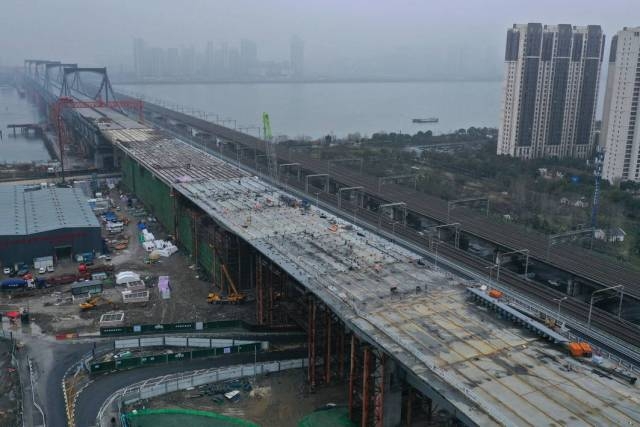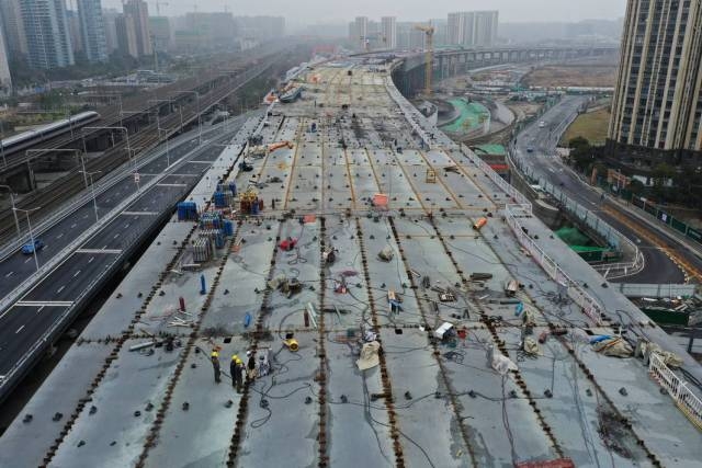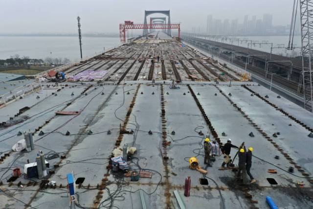 2月8日,杭州钱塘江新建大桥北接线高架桥面上,节后复工的建设者们正加紧施工。目前,沪杭甬高速公路改建工程杭州市区段的主线公路、轨道高架结构已全线贯通,为力争今年6月底前建成,确保亚运会前通车奠定了坚实基础。